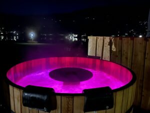 Das Wasser im HotPot wird mit einem Holzofen geheizt. Das Brennholz beziehen wir von einem regionalen Lieferanten.